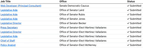 Above are all the job listings I applied for earlier this week in the CA Senate, do I think I will get any of these jobs? No.